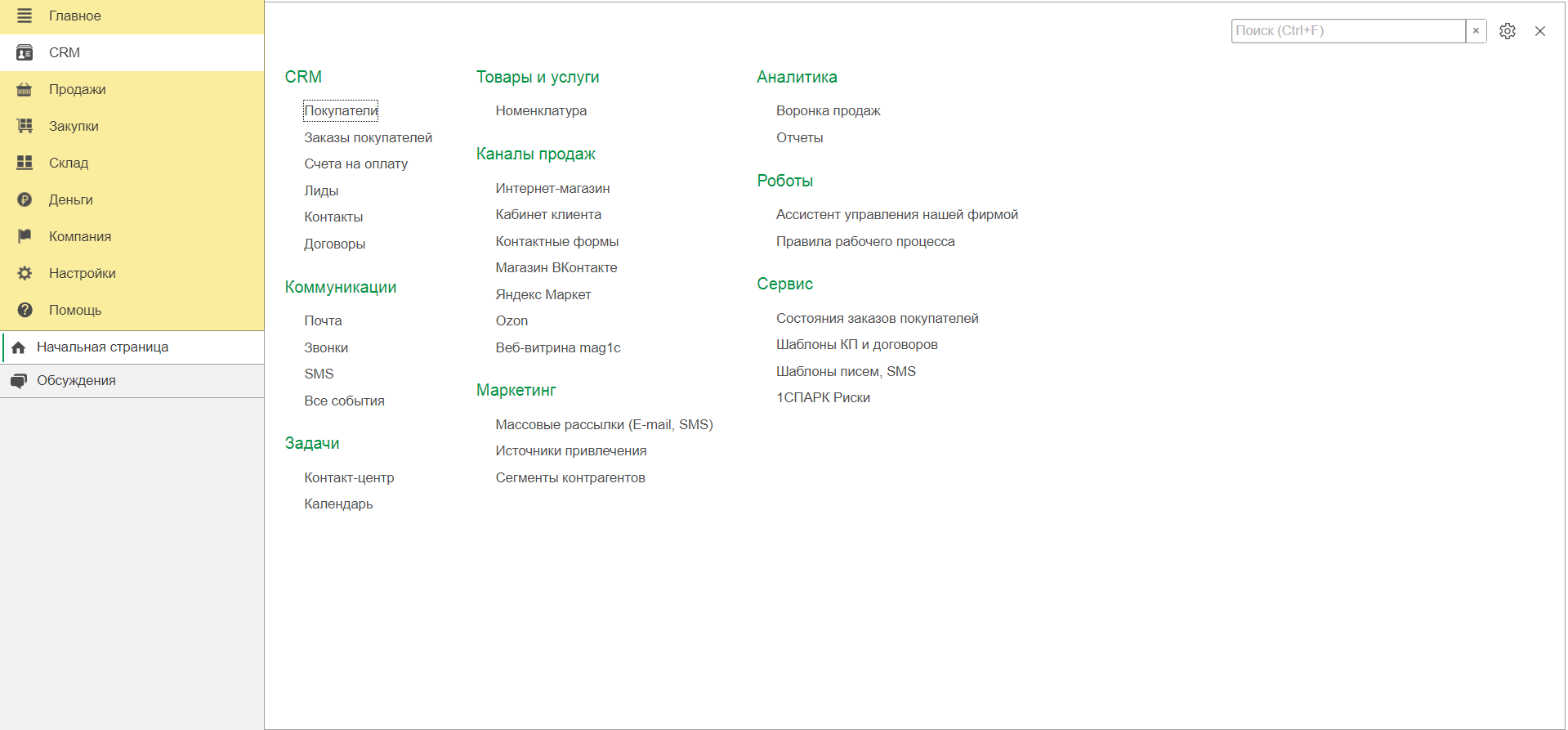 Производство/Бухгалтерия/Зарплата/Клиенты/Продажи/Торговля/Финансовый сектор/Логистика/Транспорт/Налоги/Персонал/Маркетинг